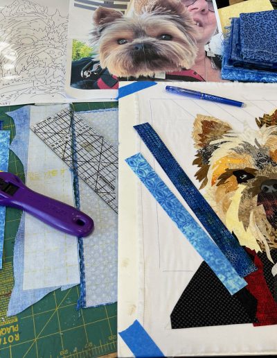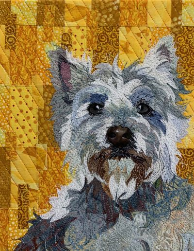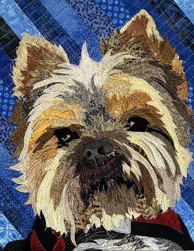 I am a Colorado native, growing up in the foothills west of Boulder. I was influenced early on by the quilts and textile arts in the home, and by the dogs, goats, rabbits, and chickens outside the home. I have been creating animal fabric collages since 2005 and working as a full-time artist since 2012.