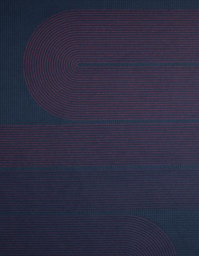 When creating quilts, Carson’s process is fluid and relies on constant experimentation, observation, and reaction. Influenced by artists such as Mark Rothko, Agnes Martin, Brice Marden, and Sol LeWitt, she works to create minimalist compositions that contain layers of complexity that unfold as viewers interact with them. Her work is also influenced by memories of landscapes, many of which are linked to western Massachusetts where she lives and works.