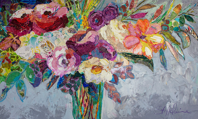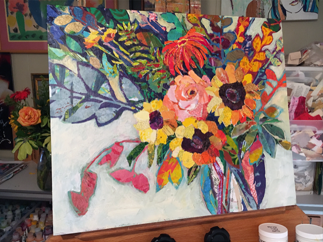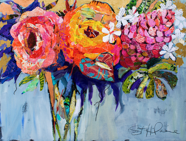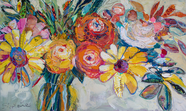 Elizabeth St. Hilaire is an award winning full-time artist, art workshop instructor, and published author. Her unique mixed-media artwork is created from torn tidbits of hand-painted paper. St Hilaire’s collages are collected and have been exhibited both nationally and internationally; images of her work are reproduced and available nationwide on wall canvas, household items, stationery, clothing, jewelry, and more. St Hilaire is a Signature Member of National Collage Society, holds a BFA from Syracuse University, and has been working in her medium for over 20 years.