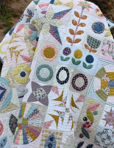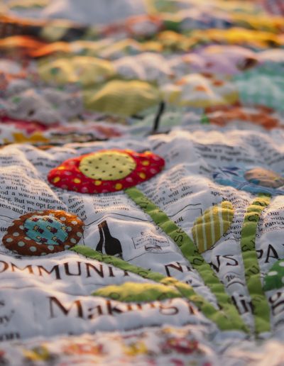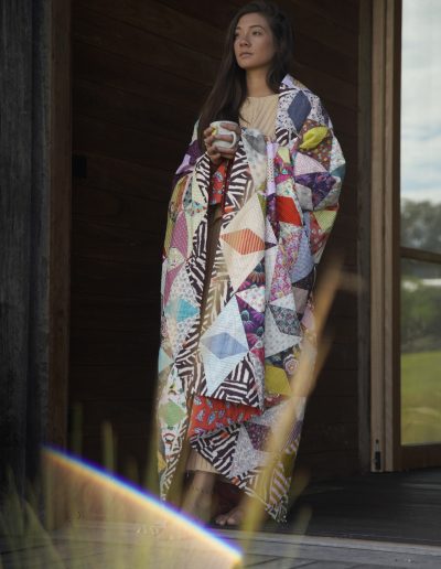 Her quilts are known for their intricate patterns, bold colours, and playful designs.