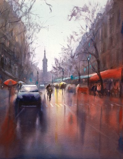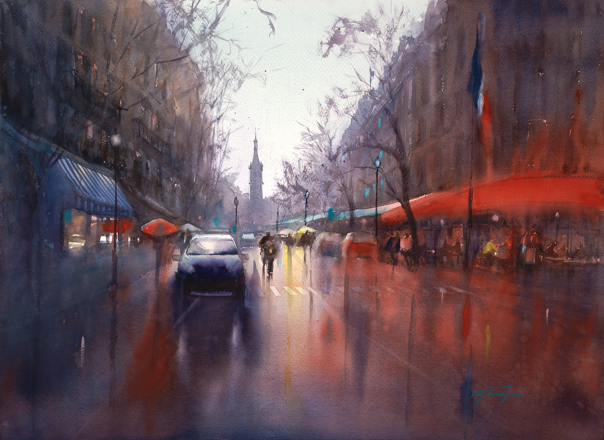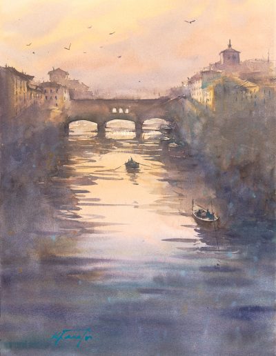 Keiko Tanabe, AWS, NWS, SDWS-MA, AIS, a mostly self-taught artist, began her professional art career in 2005 and has since gained worldwide recognition for her atmospheric watercolors. Her paintings, often created en plein air, beautifully capture the essence of time and place, depicting both exotic and simple scenes from her travels. Using a distinctive combination of color, texture, and signature brushwork, she brings landscapes, cityscapes, waterscapes, and interior scenes to life.