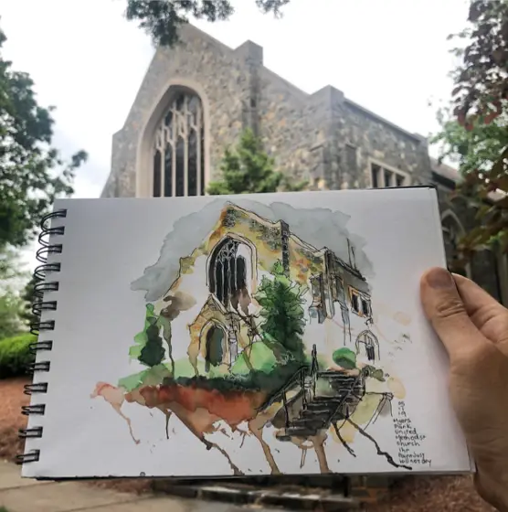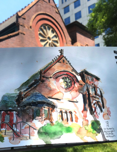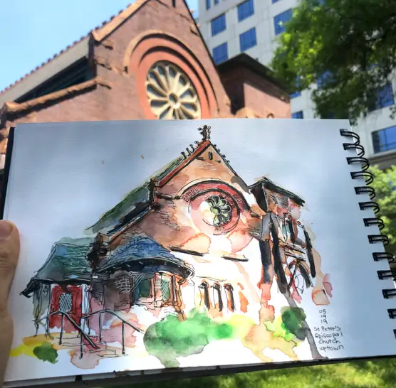 Mike Daikubara, an artist, author, designer, and educator from Charlotte, North Carolina, started sketching daily in 2000 to visually communicate more effectively and efficiently in his design job. This habit evolved into a deep passion for sketching, helping him see, understand and enjoy life. He has authored 10 books on Urban Sketching, including “Sketch NOW think Later” and “Color First Ink Later” published by Quarto. Mike has taught Urban Sketching to hundreds of students locally and internationally, including at three Urban Sketchers International symposiums in Manchester, Porto, and Chicago. In Charlotte, he continues to teach at Central Piedmont Community College (CPCC).