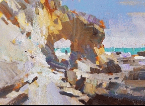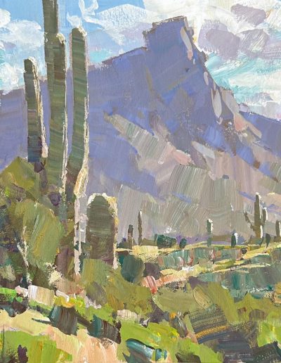 A native Angeleno, Mike Hernandez is a plein air painter skilled in gouache, oil and acrylic, who’s works have been featured in several on-line publications as well as galleries. His process began as a young child, painting still life images. Influenced by the likes of Edgar Payne, Sorolla and Franz Bischoff, Mike soon explored the foundations of color and light in the outdoors – striving to find the beauty in the ordinary. With a palette that resides at the crossroads between industrial and landscapes, he finds inspiration anywhere from the Eastern Sierra range to the muddy concrete banks of the Los Angeles River. Mike studied at Art Center College of Design in Pasadena, graduating with a B.A. in 1998. Currently, he is a Production Designer at Dreamworks Animation as well as a nation-wide sought-after workshop instructor. His works can be found in several private collections around the world.