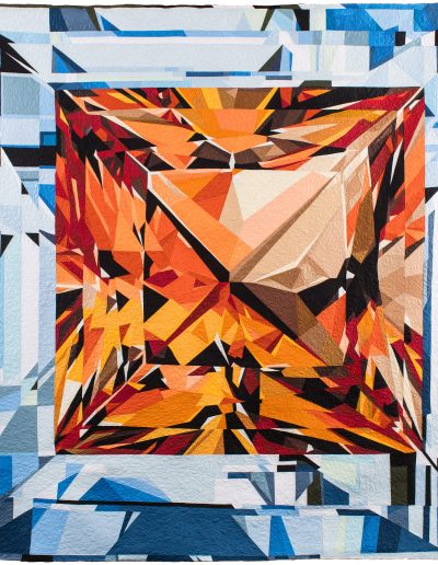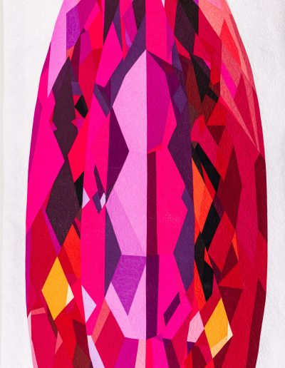 MJ’s work has been exhibited at the National Quilt Museum, the International Quilt Museum, the New England Quilt Museum, Quilt Festival (Houston, TX), Quilt Week (Paducah, KY), and Festival of Quilts (Birmingham, UK). Most recently, MJ’s piece “Torch Song” was exhibited at the Art Quilt Elements 2024 Biennial (Wayne, PA), where she received the Cindy Friedman Master Award for Excellence.