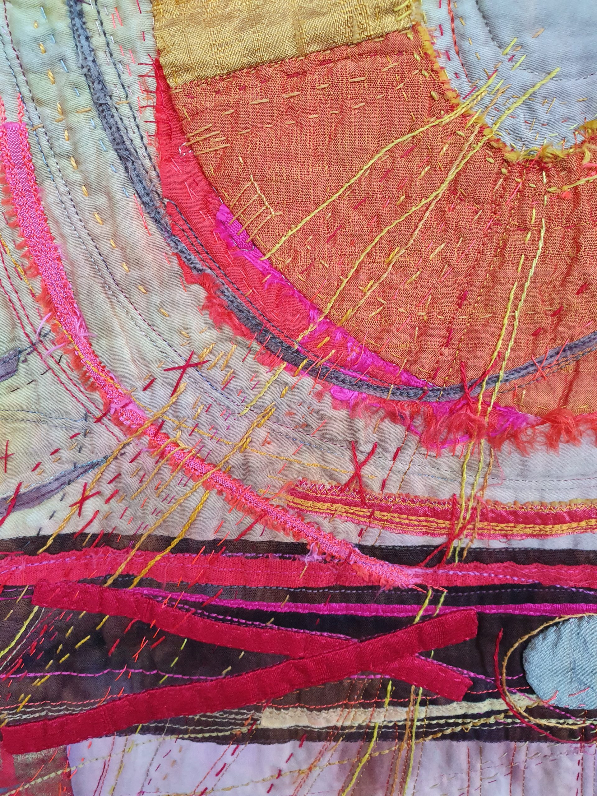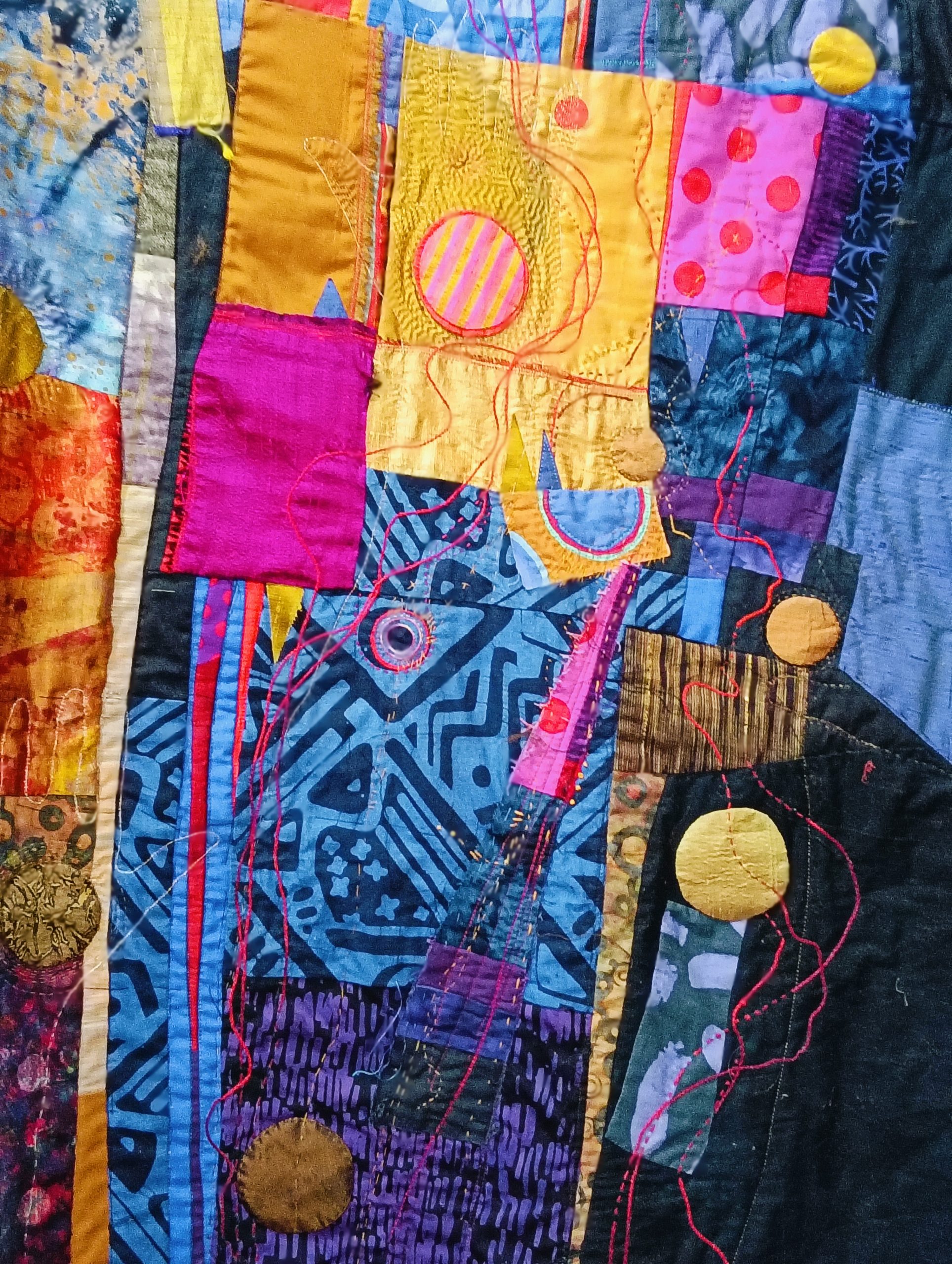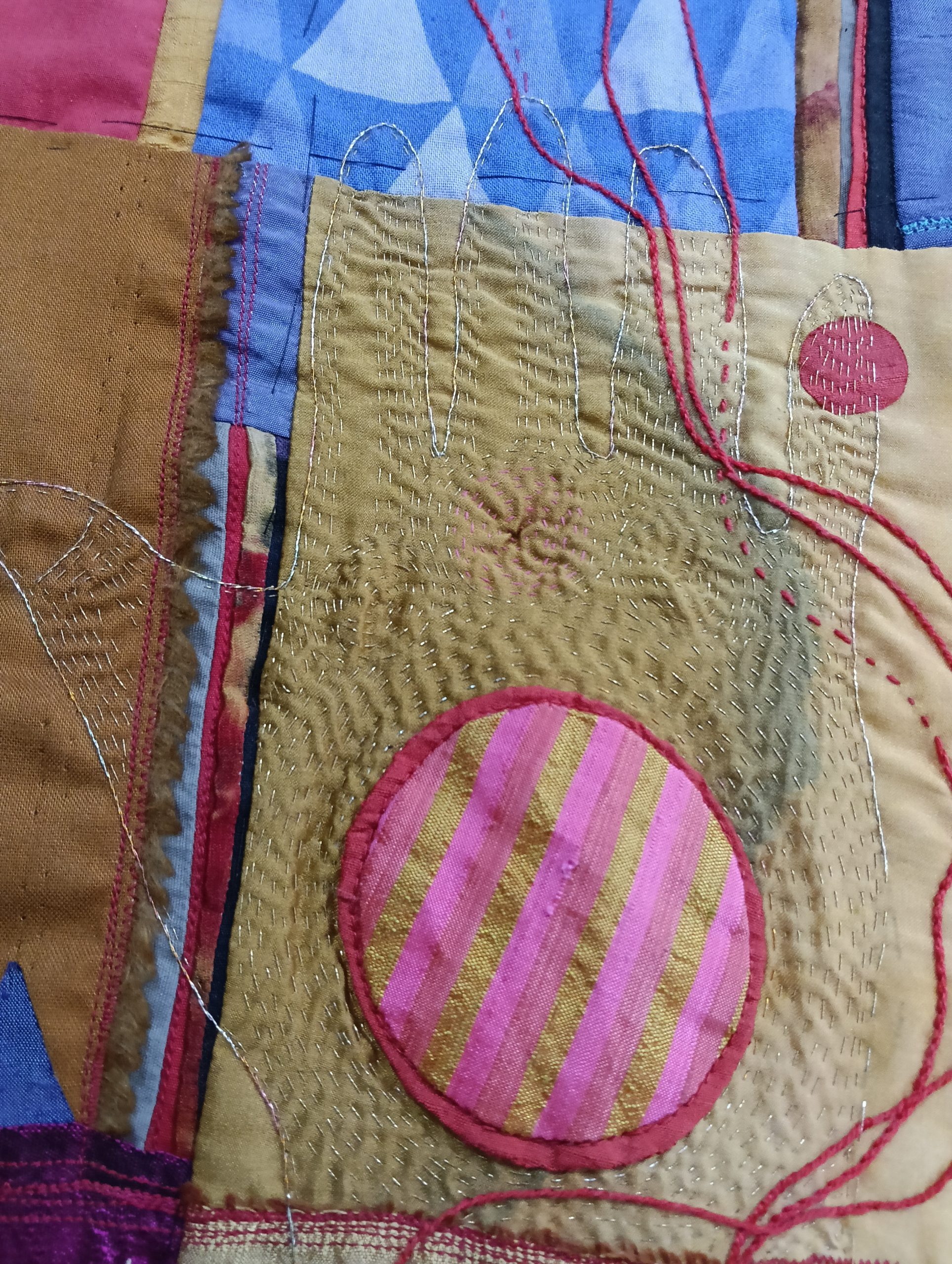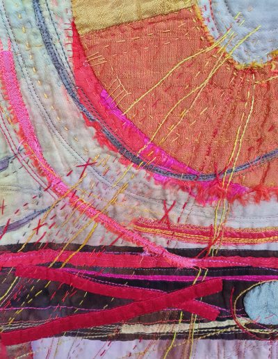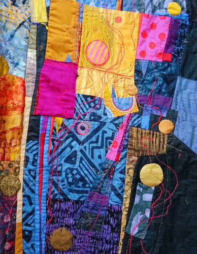 Rosalie is a full-time textile artist and quiltmaker in Durban, South Africa. She has a BA in Fine Art and English, and a post-graduate teaching diploma (U Ed), all from the University Of Natal, Pietermaritzburg, South Africa. She is passionate about colour, pattern, texture and has a lifelong interest in textiles and embroidery.