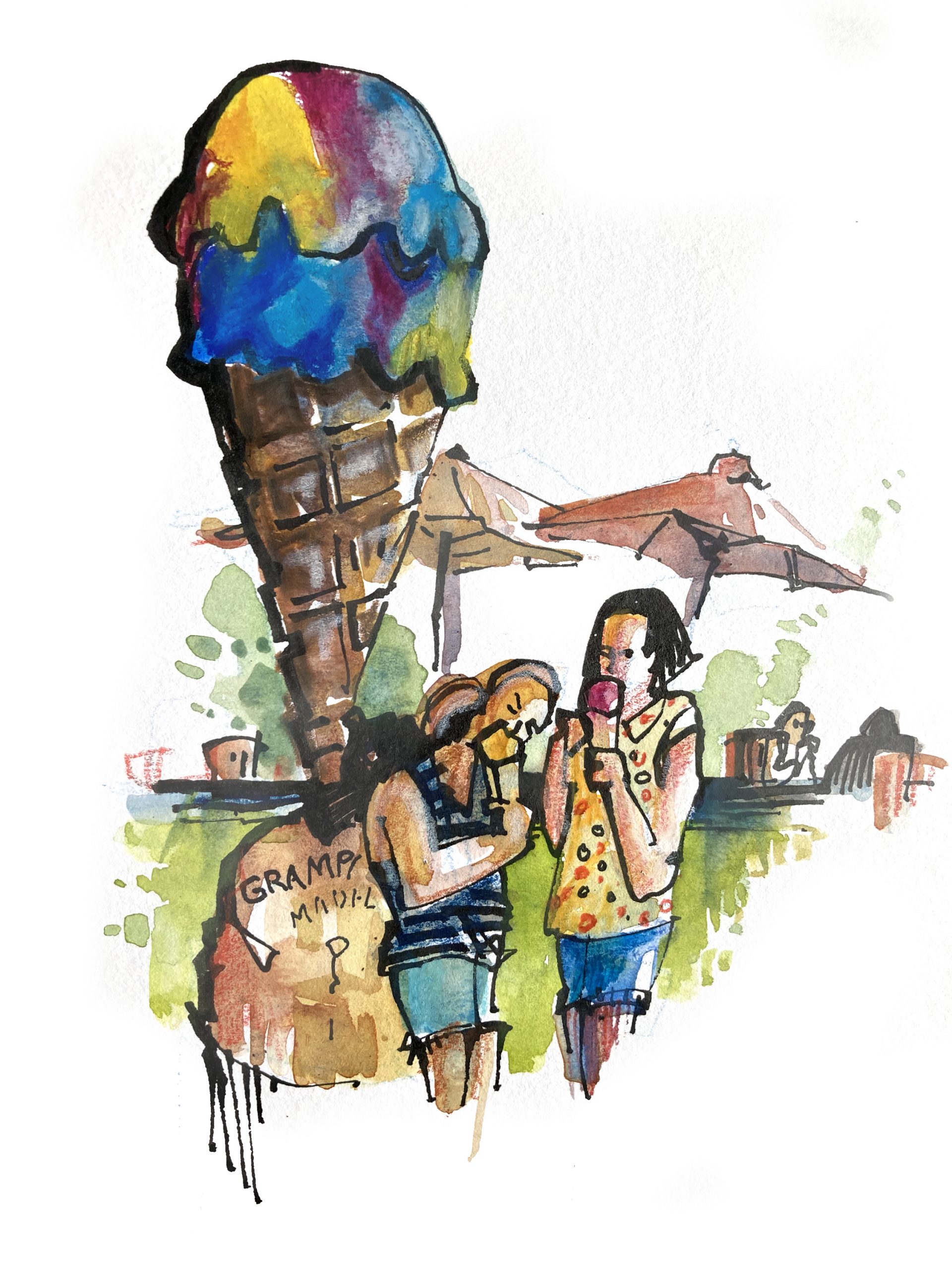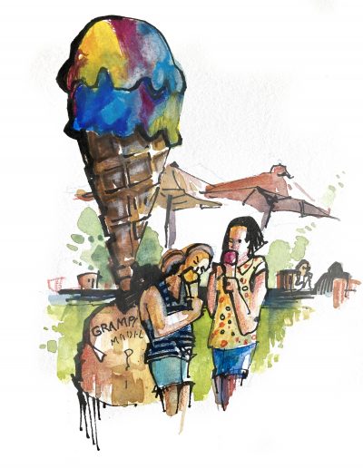 Suhita works in watercolor, pen & ink with other media in the mix. Her subjects are diverse but her focus is always on storytelling. She loves capturing the energy and vitality of people and place through mark-making and color, both of which she uses with a direct, robust approach.