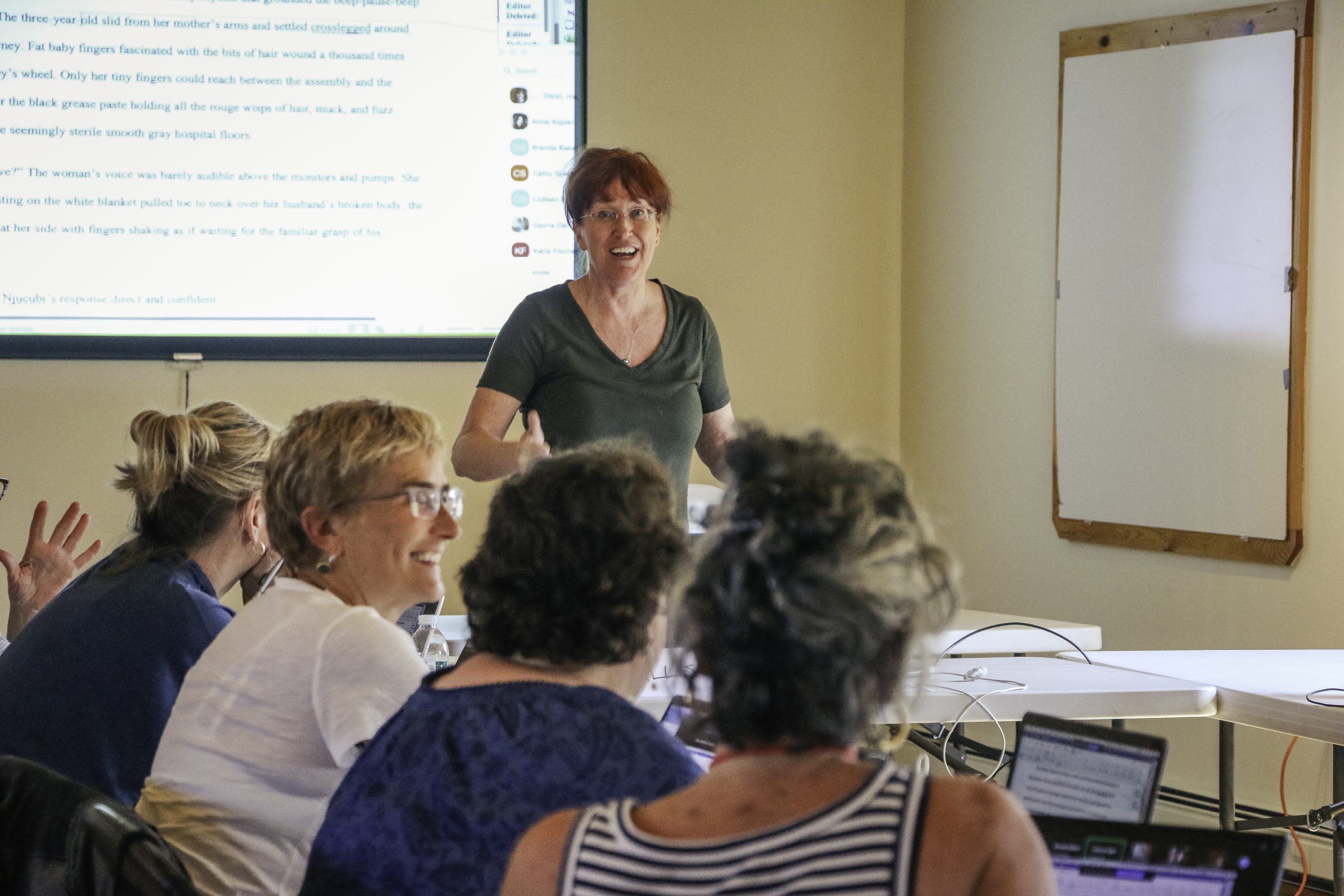 “Allison teaches incredibly well, not only with a vast pool of writing-craft knowledge and impressive retention of other people’s stories, but in the way she uses humor, psychological insight and accountability to engage and inspire us. (Watching Allison edit a piece on the screen in real time was nothing short of magic!) I came away from that extraordinary week a changed person—tired in a good way, and happy and excited to be on a path that felt good to me, and still does.” Heidi Croot